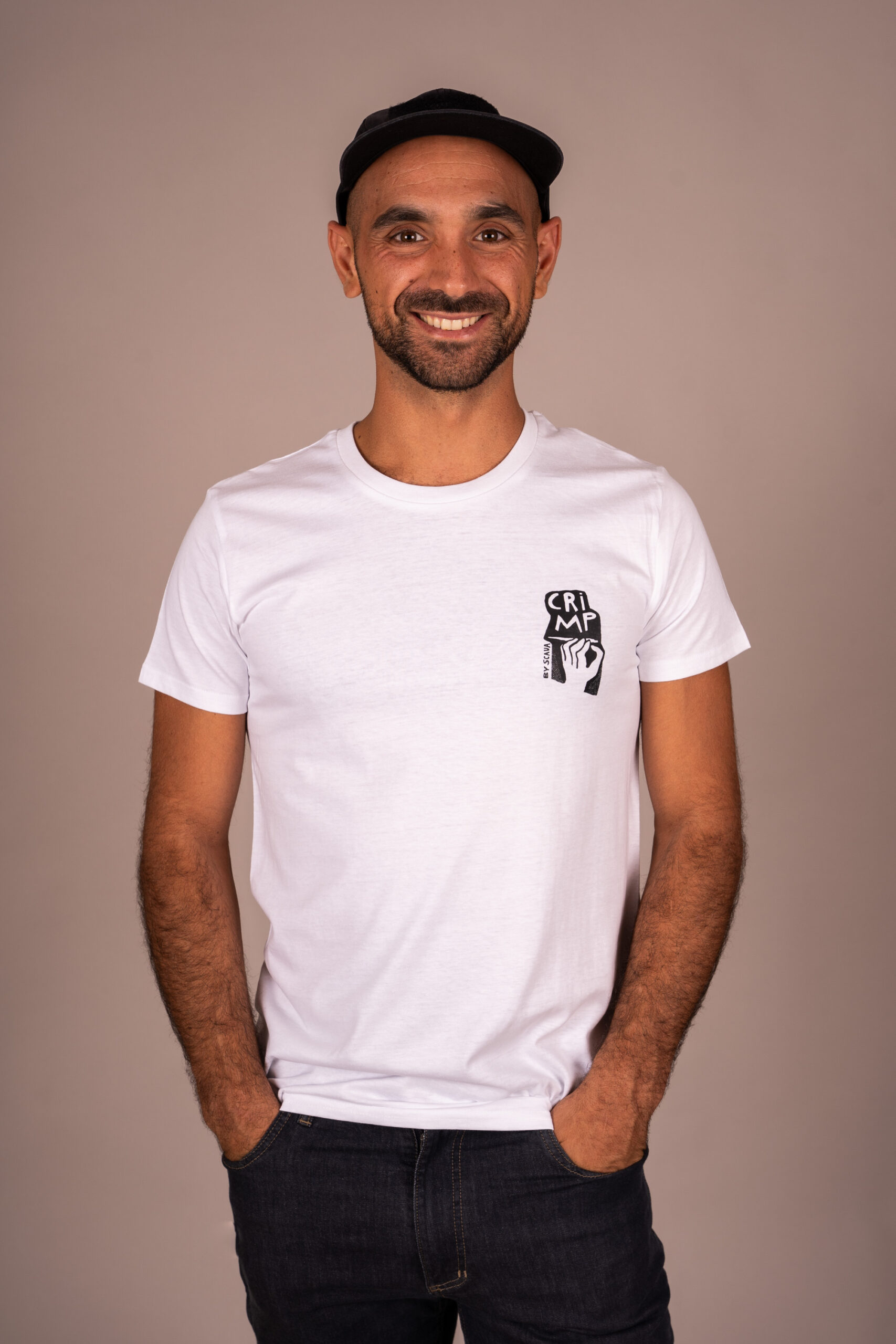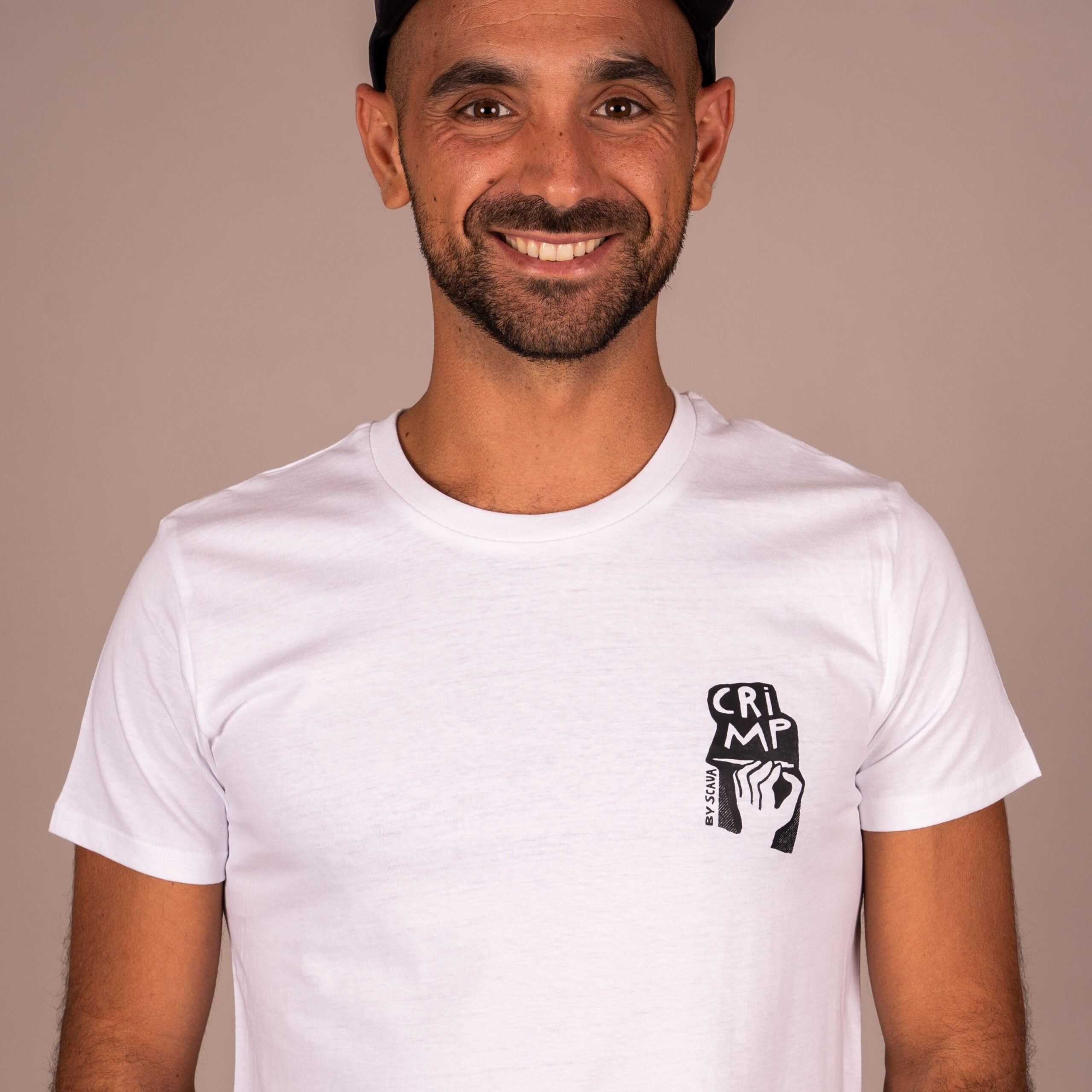 Limited edition of Crimp climbing t-shirt for man/unisex. 100% organic cotton with Fair Trade and Approved Vegan certifications.